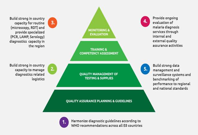 Để làm được điều đó, có lẽ các xét nghiệm viên, các kỹ thuật viên cũng nên để ý hay quan tâm đến khâu chất lượng kính hiển vi và đảm bảo chất lượng soi kính hiển vi. Làm thế nào để phân biệt được đâu là Đảm bảo chất lượng (Quality Assurance) và Kiểm tra chất lượng (Quality control) để trong thực hành nghề nghiệp cần phải tuân thủ, nhất là trong giai đoạn hiện nay, xét nghiệm lam máu nhuộm giemsa được coi là chuẩn vàng từ lâu và trở thành công cụ quan trọng trong tiến trình tiến tới loại trừ sốt rét từ đây đến năm 2030. Sự khác nhau? | Quality Assurance (QA) (Đảm bảo chất lượng) | Quality Control (Kiểm soát chất lượng) | Định nghĩa? | Đảm bảo chất lượng (QA) là một bộ các hoạt động để làm thế nào bảo đảm chất lượng trong tiến trình mà trong đó các sản phẩm được phát triển. | Kiểm soát chất lượng (QC) là một bộ các hoạt động để đảm bảo chất lượng trong sản phẩm. Các hoạt động cần tập trung vào xác định các khiếm khuyết trong sản phẩm thật được tạo ra. | Tập trung vào? | QA nhằm ngăn ngừa các khiếm khuyết, tập trung vào tiến trình sử dụng để tạo ra sản phẩm. Nó là một chu trình chất lượng chủ động giải quyết một khó khăn đã dự trù | QC nhằm xác định (và sửa chữa) các khiếm khuyết trong sản phẩm đã hoàn thành. Do đó, kiểm soát chất lượng là một tiến trình tác động trở lại. | Mục đích | Mục đích của QA ;à phát triển cải thiện và kiểm tra quy trình để các khiếm khuyết không tăng thêm khi sản phẩm đang phát triển. | Mục đích của QC là xác định các khuyết tật sau khi một sản phẩm phát triển và trước khi nó được phân bổ. | Làm thế nào | Thiết lập hệ thống quản lý chất lượng tốt và đánh giá tính đầy đủ của nó. Kiểm toán giám sát có tính định kỳ sự vận hành của hệ thống. | Tìm và loại trừ nguồn có các vấn đề liên quan đến chất lượng thông qua các công cụ và thiết bị để nhu cầu khách hàng luôn hội đủ và tính liên tục. | Cái gì? | Ngăn ngừa các vất đề liên quan đến chất lượng thông qua các hoạt động mang tính hệ thống và có kế hoạch sẵn, bao gồm cả tài liệu. | Các hoạt động hay kỹ thuật được sử dụng để đạt được và duy trì chất lượng của sản phẩm, tiến trình và các dịch vụ. | Trách nhiệm | Mọi người trong nhóm liên quan đến phát triển các sản phẩm chịu trách nhiệm về đảm bảo chất lượng sản phẩm. | QC thường có trách nhiệm của một nhom đặc biệt mà kiểm tra sản phẩm bị khiếm khuyết. | | Ví dụ | Xác định là một ví dụ của QA. | Tính hợp lệ, kiểm tra phần mềm là một ví dụ QC. | Kỹ thuật thống kê | Các công cụ và kỹ thuật thống kê có thể áp dụng trong cả QA & QC. Khi chúng áp dụng cho tiến trình (đầu vào quy trình và các thông số thực hành), chúng gọi là kiểm soát tiến trình thống kê (Statistical Process Control-SPC) và nó trở thành một phần của QA. | Khi các công cụ và kỹ thuật thống kê được áp dụng cho các sản phẩm đã hoàn chỉnh (đầu ra quy trình), chúng được gọi là kiểm soát chất lượng thống kê (Statistical Quality Control-SQC) và đến dưới QC. | Như một công cụ | QA là một công cụ quản lý. | QC là một công cụ sửa chữa | | Định hướng | QA là tiến trình định hương | QC là sản phẩm định hướng |