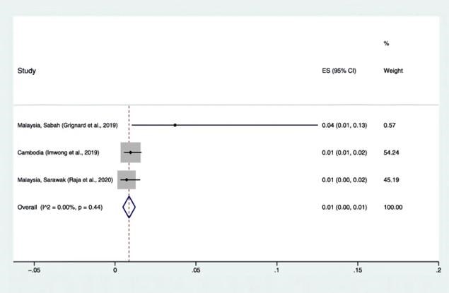 Hình 14. Kết quả phân tích gộp tỷ lệ nhiễm P. cynomolgi tại khu vực Đông Nam Á