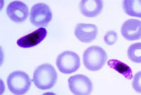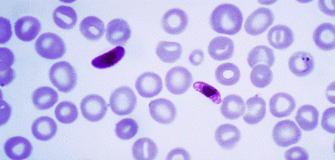 Hình ảnh Plasmodium falciparum trên lam máu giọt đàn, gây sốt rét ác tính ở người ( Ảnh: US CDC) |