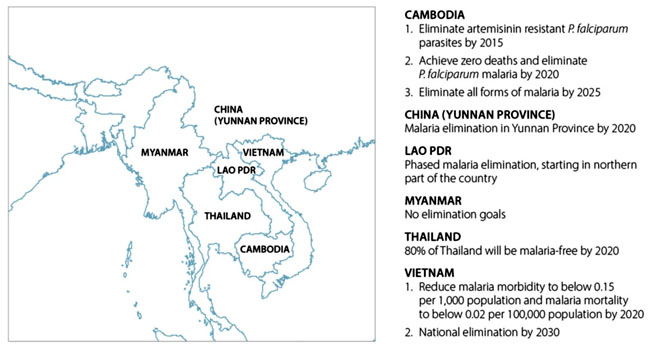 Chiến lược loại trừ bệnh sốt rét ở Tiểu vùng sông Mê Kông mở rộng 2015-2030 được xây dựng dựa trên Chiến lược kỹ thuật toàn cầu mới của WHO về bệnh sốt rét giai đoạn 2016-2030 (GTS). Chiến lược này đã được hoàn thiện hơn nữa thông qua một loạt các cuộc tham vấn có sự tham gia của các chương trình sốt rét quốc gia GMS và các đối tác của họ, các chuyên gia tư vấn của WHO và nhân viên từ Chương trình sốt rét toàn cầu của WHO, Văn phòng khu vực của WHO ở Đông Nam Á và Tây Thái Bình Dương, và Cơ quan ứng phó khẩn cấp của WHOđến tình trạng kháng thuốc artemisinin tại Trung tâm khu vực GMS. Chiến lược này cũng được hưởng lợi từ những đóng góp từ Ủy ban Tư vấn Chính sách Sốt rét của WHO. Mục tiêu của Chiến lược tại GMS là sẽ loại trừ sốt rét doPlasmodium falciparum vào năm 2025 và loại trừ sốt rét toàn khu vực vào năm 2030.