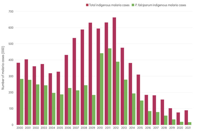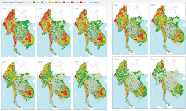 Như vậy thì sau một thời gian dài, ghi nhận sư giảm bền vững bệnh nhân sốt rét tại GMS, thì từ năm 2021 số lượng ca bệnh ở đây đã gia tăng trở lại và đỉnh điểm vào năm 2022, chủ yếu là do sự bùng phát trở lại của bệnh sốt rét ở Myanmar và tình trạng lây truyền sốt rét vùng biên giớiThái Lan-Myanmar.