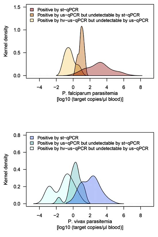 Tuy nhiên, EDT được cho là không hiệu quả hơn trong việc phá vỡ chu kỳ lây truyền của P. vivax so với P. falciparum. Plasmodium vivax được đặc trưng bởi thể ngủ ở giai đoạn gan gây nhiễm trùng máu tái phát mà không tiếp xúc với vết cắn nhiễm trùng mới. Những thể ngủ này không bị tiêu diệt bởi chloroquine và do đó không thể ngăn ngừa tái phát bằng cách điều trị sớm. Phương pháp điều trịhiện có để chữa trị triệt để P. vivax là một liệu trình 14 ngày với primaquine nhưng nó hiếm khi được sử dụng do tuân thủ điều trị kém và khả năng gây độc trong trường hợp thiếu men G6PD. Các xét nghiệm G6PD tại điểm chăm sóc và các phương pháp điều trị thể ngủ tốt hơn là cần thiết để loại bỏ P. vivax. Bên cạnh đó, tỷ lệ ký sinh trùng P. vivax trong máuthấp hơn nhiều so với P. falciparum một cách tự nhiên và nhất quán. Mật độ ký sinh trùng của P. vivax khi biểu hiện lâm sàng thường nằm trong khoảng 4 000 +/-3 000 ký sinh trùng trên μL máu (p/μL), thấp hơn từ 3 đến 4 lần so với P. falciparum và tỷ lệ ký sinh trùng cao nhất hiếm khi vượt quá 100.000 p/μL ở P. vivax nhưng khá phổ biến ở P. falciparum. Trên thực tế, một tỷ lệ lớn các trường hợp nhiễm P. vivax, lên đến 70% ở một số khu vực nhất định, đã được phát hiện là nằm dưới giới hạn phát hiện (LOD) của kính hiển vi. Nhiễm KST dưới ngưỡng phát hiện kính hiển vi, đặc biệt ở những khu vực có tỷ lệ lưu hành bệnh thấp, là một thách thứcđối với chiến lược phát hiện và điều trị sớm, cũng như nỗ lực loại trừ ở các địa phương với P.vivax.