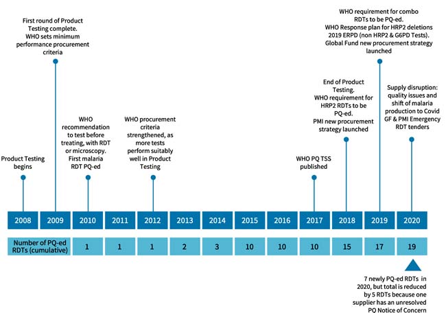 Hình 2. Sự phát triển của hệ thống giám sát chất lượngRDTsvà số lượng RDTs được WHO chấp nhận theo từng năm