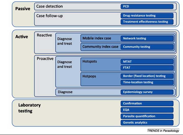 Để cung cấp các can thiệp phát hiện và điều trị sớm cần sử dụng các cách tiếp cận linh hoạt. Việc phát hiện và điều trị sớm trong giai đoạn LTSR thường được cung cấp thông qua một trong hai cách tiếp cận:phát hiện ca bệnh thụ động (Passive case detection-PCD), được kích hoạt bởi các bệnh nhân có triệu chứng tìm kiếm dịch vụ chẩn đoán và điều trị tại các cơ sở y tế; hoặcphát hiện ca bệnh chủ động (Activecase detection-ACD), nghĩa là nhân viên y tế chủ độngtìm kiếm và xét nghiệm những trường hợp có nguy cơ cao (Proactive casedetection-PACD) hoặc những người có liên quan đến ca bệnh sốt rét đã được xác nhận-ca bệnh chỉ điểm(Reactive casedetection-RACD). Phát hiện sớm và điều trị thụ động khi bệnh nhân đến gặp nhân viên y tế có hiệu quả trong việc kiểm soát bệnh sốt rét. Nhưng khi các trường hợp mắc bệnh sốt rét giảm và các địa phương tiến tới loại trừsốt rét, cần có các phương phápchuyên sâu hơnPCD để đẩy nhanh quá trình cắt đứt lan truyền và ngăn chặn sốt rét tái thiết lập lan truyền trở lại. Do đóACD đóng vai trò rất quan trọng trong phát hiện và điều trị sớm bệnh nhân sốt rét trong giai đoạn LTSR.