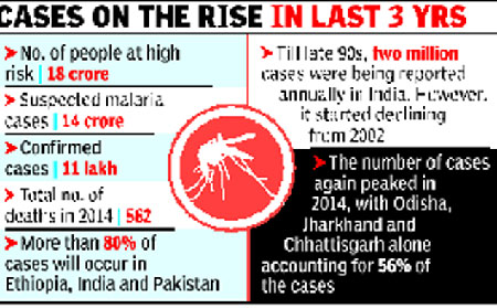 Ngày 7/1/2015. CHENNAI. Báo cáo của Tổ chức Y tế thế giới (WHO) cho biết 1 trong 7 người Ấn Độ có nguy cơ mắc bệnh sốt rét (1 in 7 Indians is at risk of malaria, says WHO report). Báo cáo mà nó nêu lên sự quan ngạicủa các quan chức y tế công cộng cho rằng Ấn Độ cùng với Ethiopia, Pakistan và Indonesia chiếm 80% tất cả các trường hợp sốt rét trên toàn cầu nhưng quốc gia này lại phân bổ kinh phí thấp nhất để phòng chống bệnh sốt rét trên thế giới.