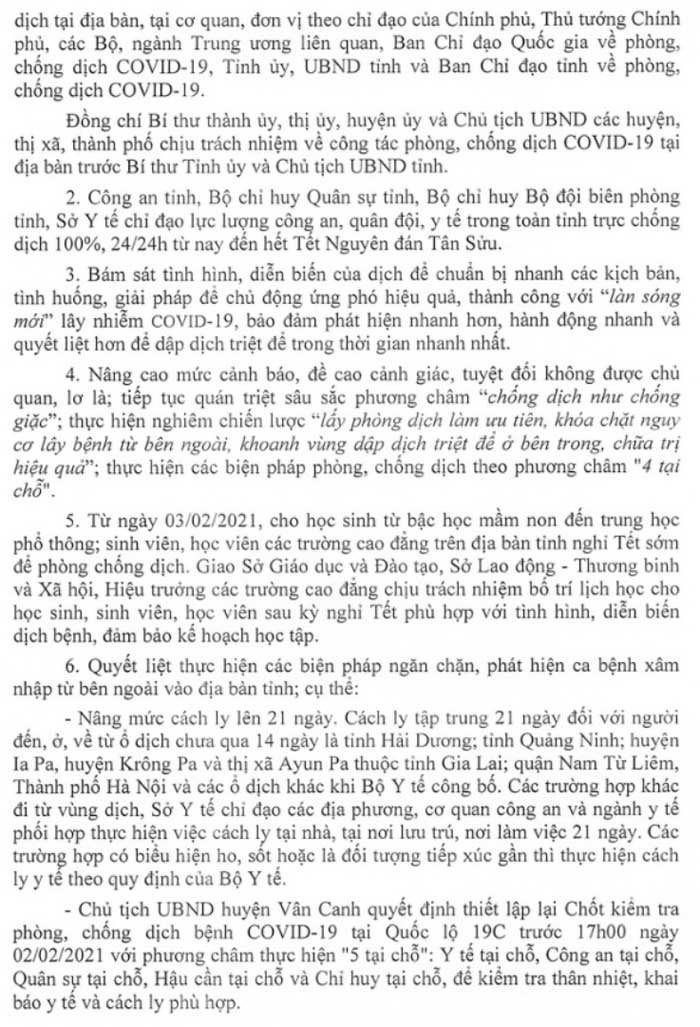 3. Lập chốt cách ly tai Quốc lộ 19C trước 17h ngày 2/2/2021 và 1 số chốt khác tại nhà ga, cảng...