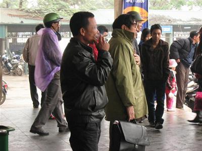 Vô tư hút thuốc ở bến xe Mỹ Đình trong ngày quy định cấm hút thuốc lá nơi công cộng có hiệu lực. (Ảnh: Văn Việt-tintuc.xalo.vn) |