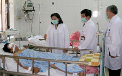 Điều trị bệnh nhân cúm A/H1N1 tại Bệnh viện Các bệnh nhiệt đới Trung ương - Ảnh: Ngọc Thắng-thanhnien online |
