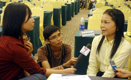 Chị Nguyễn Thị Ngọc Mai trả lời phỏng vấn báo chí sáng 16-5 - Ảnh: Trung Uyên |