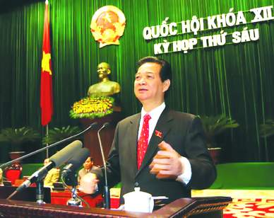 Thủ tướng Nguyễn Tấn Dũng tại phiên trả lời chất vấn trước Quốc hội. |