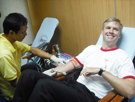 Ông Jack Howell - Tổng Giám đốc Prudential VN tham gia hiến máu(ảnh:SGGP online) |