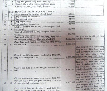 Ngoài ra mức thu này cũng đã phân lập cụ thể, chi tiết các nhóm kỹ thuật lẫn phương pháp điều trị. Ví dụ với siêu âm thì có siêu âm màu với giá từ 80.000-150.000đ, siêu âm 2D. “Hiện với siêu âm màu đang bị các cơ sở khám chữa bệnh lạm dùng nhiều. Đơn cử như với kỹ thuật siêu âm ổ bụng thì chỉ cần chức năng của máy siêu âm 2D thôi với chi phí được thanh toán chỉ 20.000 đ. Trong khi đó nếu dùng 2D rồi nhuộm màu thì mức thanh toán từ 80.000- 150.000, gấp gấp từ 4-7 lần so với kỹ thuật 2D.
