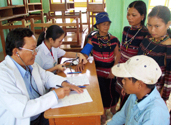 Bác sĩ từ TP Hồ Chí Minh về huyện Đắk Đoa (tỉnh Gia Lai) khám, chữa bệnh cho dân, hỗ trợ chuyên môn cho cán bộ y tế địa phương. Ảnh: Sỹ Huynh - TTXVN |