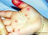 Đặc biệt, bệnh TCM cũng rất dễ nhầm lẫn với các bệnh do nhiễm khuẩn huyết, sốc nhiễm khuẩn, viêm phổi. Có thể nhận biết được 2 bệnh này nếu chú ý: trẻ có nốt ở bụng, tay, chân… thì không phải TCM.