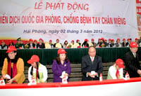 Ngày 2-3, tại Nhà hát lớn TP Hải Phòng, Phó thủ tướng Nguyễn Xuân Phúc cùng lãnh đạo Bộ Y tế và UBND TP Hải Phòng đã phát động chiến dịch quốc gia phòng chống bệnh tay chân miệng.