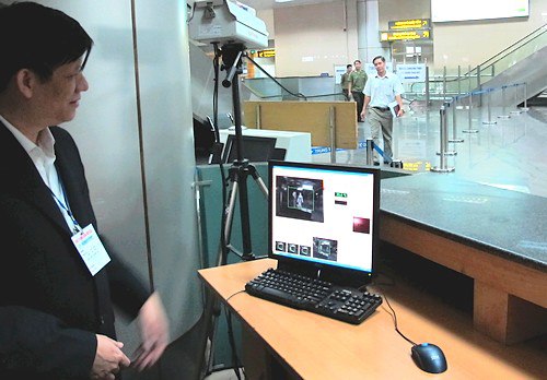 Thứ trưởng Bộ Y tế Nguyễn Thanh Long kiểm tra máy soi thân nhiệt tại sân bay Nội Bài |