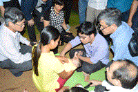 Theo ghi nhận của P.V Thanh Niên tại nhà “thần y” Duyên luôn có khoảng 20 - 40 người đang chờ được trị bệnh. Ngôi nhà chỉ có diện tích khoảng 40m2, nên người nào bệnh nặng được ưu tiên nằm dưới sàn, người nào bệnh nhẹ ngồi ghế hoặc về phòng trọ nằm, đến giờ chữa bệnh mới ra. Ngoài bà Duyên, có 2 người phụ nữ khác khoảng 40 tuổi phụ giúp việc chữa bệnh. Bà Duyên và 2 người phụ nữ này thường đắp vào người bệnh nhân một loại thuốc không rõ nguồn gốc, có màu xanh. Ngoài ra, bà Duyên còn dùng một số loại thuốc dạng nước để bôi và thuốc dạng kem có in chữ Trung Quốc. Cùng với đắp, bôi thuốc, bà Duyên còn dùng máy châm cứu cho bệnh nhân và kết hợp tẩm quất, massage. Người nào đau nhiều thì bà Duyên tiêm hoặc cho uống loại thuốc gì đó không rõ nhãn hiệu. Theo nhiều bệnh nhân chữa trị tại nhà “thầy lang” Duyên thì họ đã phải bỏ ra số tiền rất lớn. Mặc dù bà Duyên nói không lấy tiền công, nhưng lại thu tiền thuốc rất đắt mất cả trăm triệu đồng, chưa tính đến chi phi ăn uống, thuê trọ...