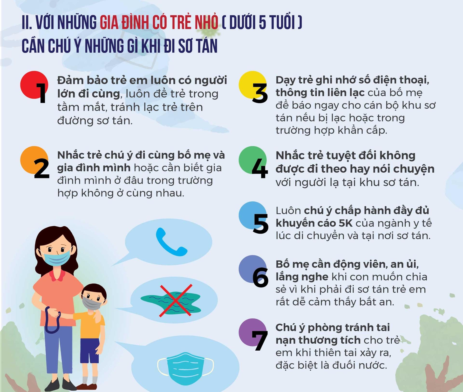 Những lưu ý dành cho các gia đình có con nhỏ dưới 5 tuổi trong trường hợp phải đi sơ tán do thiên tai