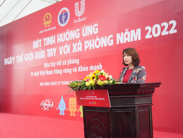 PGS.TS Nguyễn Thị Liên Hương-Thứ trưởng Bộ Y tế đã nhấn mạnh thông tin trên tại buổi Lễ mít tinh hưởng ứng "Ngày Thế giới rửa tay với xà phòng" do Bộ Y tế phối hợp với UBND tỉnh Bắc Ninh tổ chức, diễn ra tỉnh Bắc Ninh với chủ đề "Rửa tay với xà phòng vì một Việt Nam vững vàng và khỏe mạnh". Sự kiện có sự tham dự của khoảng 1.200 người.