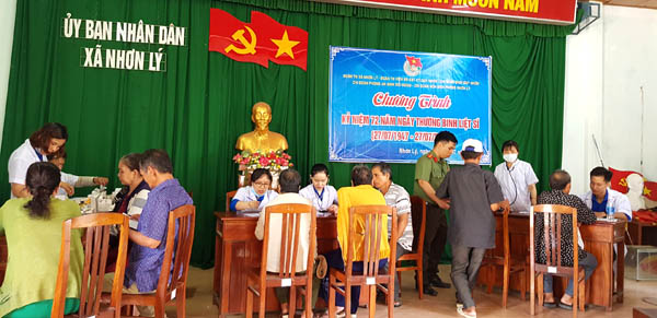 Đoàn viên y, bác sỹ Viện Sốt rét-KST-CT Quy Nhơn khám bệnh, cấp phát thuốc miễn phí cho bà con chính sách, người nghèo.
