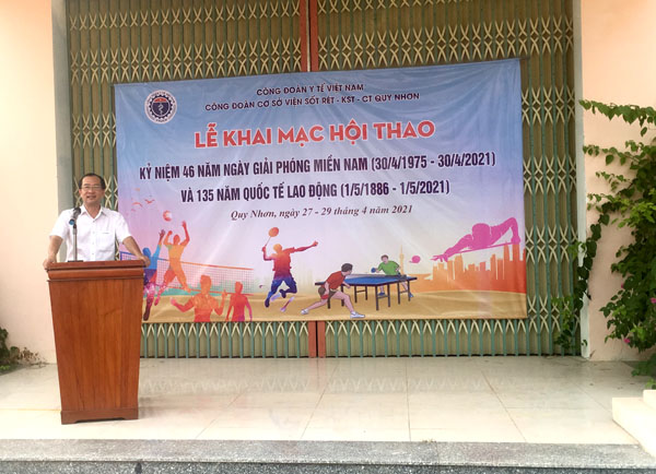Trong không khí tưng bừng phấn khởi, thi đua lập thành tích chào mừng46 năm ngày Giải phóng miền Nam (30/4/1975-30/4/2021) và 135 năm Ngày Quốc tế Lao động 1/5/1986-1/5/2021), ngày 28/3/2021 tại Khu liên hợp thể thao Viện Sốt rét-KST-CT Quy Nhơn, Công đoàn cơ sở Viện phối hợp với Đoàn Thanh niên tổ chức Hội thao giữa các vận động viên là cán bộ viên chức trong Viện.