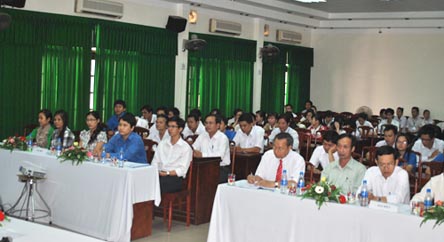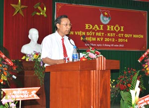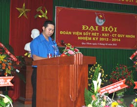 Đ/c Nguyễn Doãn Khôi-Phó Bí thư Đoàn báo cáo kiểm điểm Ban Chấp hành khóa XIII và nêu lên những mặt hoạt động còn hạn chế trong nhiệm kỳ 2009 – 2012 vừa qua. |