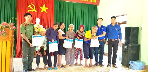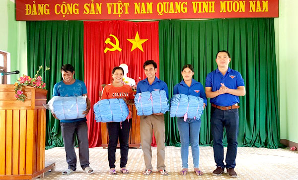 Đ/c Nguyễn Doãn Khôi – Bí thư đoàn Viện trao tặng quà và màn phòng chống côn trùng cho bà con xã Ân Sơn  |