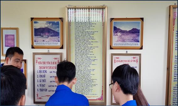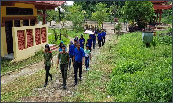 Tiếp theo, chuyến hành trình thắp hương tưởng nhớ các liệt sĩ của Sư đoàn 3 đã hy sinh trên đỉnh đồi núi Chéo. Theo lời kể của người dân địa phương, núi Chéo có vị thế chiến lược vô cùng quan trọng trong khu vực khi từ trên đỉnh núi Chéo có thể quan sát được toàn cảnh Hoài Ân, Hoài Nhơn cũng như đường lên An Lão. Chính vì thế, thời kháng chiến chống Mỹ, quân và dân ta đã hy sinh bằng mọi giá để giữ lấy được căn cứ trọng điểm này. Thắp những nén hương tưởng nhớ các liệt sĩ anh hùng, Đoàn cơ sở Viện biết ơn sâu sắc đến sự hy sinh anh dũng của các chiến sĩ năm xưa cho sự hòa bình thống nhất đất nước.Di tích lịch sử cuối cùng trong chuyến hành trình là nơi sinh hoạt năm của Chi bộ Vạn Đức-một trong ba Chi bộ đầu tiên của Đảng cộng sản Việt Nam tại Bình Định. Với truyền thống anh hùng của mảnh đất này, Chi bộ Vạn Đức từ thuở mới thành lập đến nay đã sản sinh ra bao nhiêu Đảng viên xuất sắc, không những góp sức xây dựng tỉnh nhà mà còn trở thành những lãnh đạo quan trọng của đất nước.