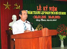 Đ/c Bí thư Đoàn đọc diễn văn ôn lại những truyền thống vẻ vang, hào hùng của Đoàn. |