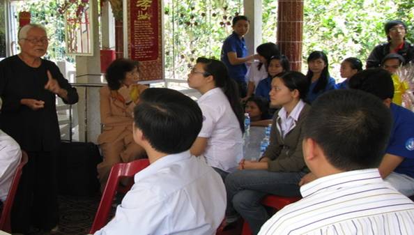 Người thân của anh Trần Văn Ơn kể chuyện về anh cho các bạn SV nghe - Ảnh: Quốc Linh |