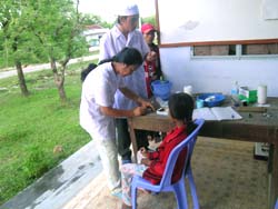 Điều tra tỷ lệ hiện mắc tại 22 xã được xác định là các điểm nóng sốt rét; trong đó 17 xã đã được điều rta năm 2005 và 5 xã của huyện mới sẽ tiến hành đồng thời điều tra tỷ lệ hiện mắc với phỏng vấn chủ hộ tại thôn bản đã được chọn cho điều tra hộ gia đình mà thôn này được xác định là điểm nóng sốt rét; tỷ lệ hiện mắc ở các điểm này sẽ được điều tra thông qua khám lách, cặp nhiệt độ và lấy lam máu xét nghiệm tìm ký sinh trùng sốt rét bằng kính hiển vi. Số mẫu điều tra khám lách, cặp nhiệt độ và xét nghiệm máu cho tất cả các thành viên trong 15 hộ gia đình của 2 thôn bản đã chọn; lam máu do xét nghiệm viên của đội điều tra lấy sẽ được nhuộm và soi tại 3 Viện Sốt rét-Ký sinh trùng-Côn trùng để điền kết quả vào phiếu điều tra.