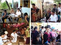Đoàn công tác đang lấy lam máu và sự hưởng ứng của người dân. |