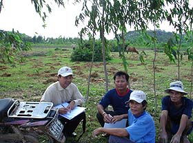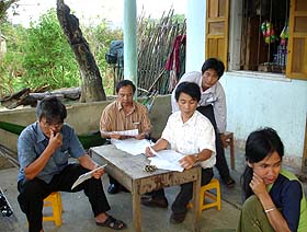 | Đoàn điều tra đang phỏng vấn người dân tại xã Vĩnh An, huyện Tây Sơn |