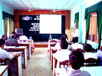 TS. Phạm Nguyễn Cẩm Thạch-Giám đốc Sở Y tế-Trưởng ban quản lý Dự án đã trả lời một số thắc mắc về các chế độ bảo dưỡng phương tiện, các mẫu thống kê báo cáo về tài chánh và ký kết hợp đồng trách nhiệm với các đồng chí Trưởng ban QLDA cấp huyện.