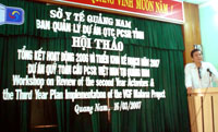 TS. Phạm Nguyễn Cẩm Thạch-Giám đốc Sở Y tế đã khai mạc Hội thảo và đặt ra các tiêu chí cần phải thảo luận trong Hội thảo nhằm thực hiện và quản lý có hiệu quả kinh phí và các vật tư của Dự án, góp phần duy trì thành quả PCSR tại Quảng Nam.