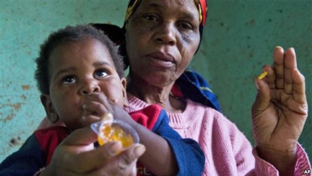 Trẻ em có HIV dương tính tên Gift được cho một số mứt trước khi dùng thuốc ARV bởi một người chăm sóc vào ngày thứ ba 30/11/2010 gần Durban Nam Phi
