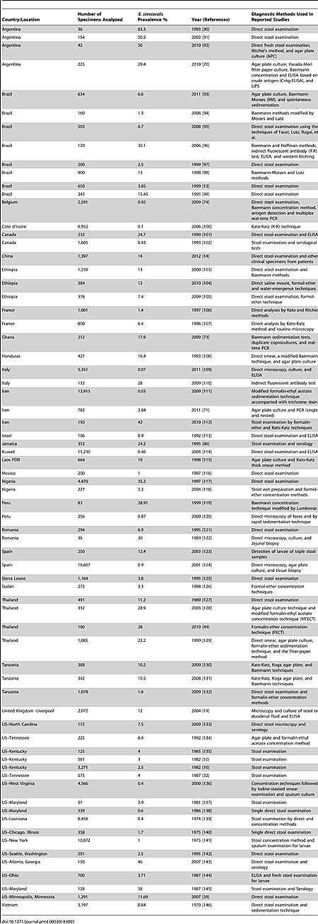 94.Ines Ede J, Souza JN, Santos RC, Souza ES, Santos FL, et al. (2011) Efficacy of parasitological methods for the diagnosis of Strongyloides stercoralis and hookworm in faecal specimens. Acta Trop 120: 206–210. doi: 10.1016/j.actatropica.2011.08.010