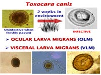 Nhiễm trùng ở người với T. canis và T. cati, có thể dẫn đến một số triệu chứng như VLMs và OLMs và viêm não màng não tăng bạch cầu ái toan (eosinophilic meningoencephalitis_EME), thể ẩn (Covert toxocariasis_CT) và bệnh lý thần kinh do giun đũa chó mèo (Neurotoxocariasis) được xem lưu hành và bệnh giun sán bị lãng quên tại các quốc gia công nghiệp. Xác định chính xác Toxocara spp. và chẩn đoán phân biệt rõ ràng từ giun tròn này với giun tròn khác giống ascaridoid gây nên bệnh lý VLMs và OLMs có tầm quan trọng để nghiên cứu về phân loại học, dịch tễ học, di truyền quần thể, chẩn đoán và phòng chống.
