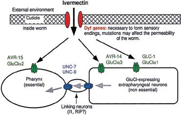 IVM có thể điều trị cho bệnh do AT Gnathostoma spp. ở người. Cơ chế tác động thông qua gắn chọn lọc với kênh ion glutamate-gated chloride ion trên dây thần kinh cột sống và tế bào cơ giun, gây chết tế bào. Thời gian bán hủy là 16 giờ, chuyển hóa thuốc chủ yếu ở gan. Thuốc có thể tương tác với kênh ion ligand-gated chloride khác, như GABA chẳng hạn.
