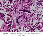 Chúng tôi báo cáo một trường hợp bệnh nhân 35 tuổi người Jamaica với bệnh sử nhiễm HTLV-1, có triệu chứng đau bụng nghiêm trọng, nôn mửa, sụt cân nhiều và thiếu máu thiếu sắt. Nội soi và sinh thiết cho thấy ruột phẳng láng với ký sinh trùng strongyloides stercoralis (hình 1). Anh ta được điều trị giun lươn bằng ivermectin trong hai ngày. Ba năm sau, ông ta quay lại với bệnh cảnh sốt, ho, khó thở, sụt cân nhiều và kèm bệnh lý hạch (lymphadenopathy). Sinh thiết hạch lympho cho thấy bản chất là u lympho tế bào T (T-cell lymphoma). X-quang phổi và CT cho thấy thâm nhiễm nhu mô nhiều vùng. Soi phế quản với hút dịch phế quản cho kết quả có ấu trùng Strongyloidoses stercolaris.