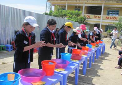 Hướng dẫn học sinh rửa tay để phòng chống giun truyền qua đất (ảnh internet) |