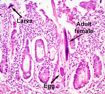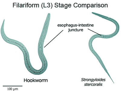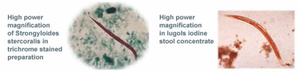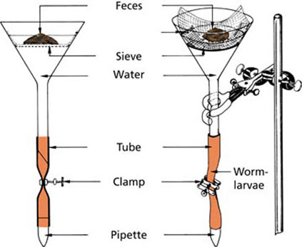 Giun cái Aelurostrongylus abstrusus và S. stercoralis đẻ trứng và đẻ rất nhanh, dẫn đến giai đoạn ấu trùng từ vật chủ. Các ấu trùng này có thể tìm thấy dựa vào xét nghiệm thường quy làm nổi phân, nhưng các dung dịch làm nổi có đặc tính “hyperosmotic flotation solution” sẽ nhanh chóng làm xoắn vặn chúng, khiến cho hình ảnh đặc hiệu khó xác định. Phương pháp Baermann cho phép phục hồi các ấu trùng này mà không cần cho chúng phơi nhiễm với các dung dịch phá hủy.