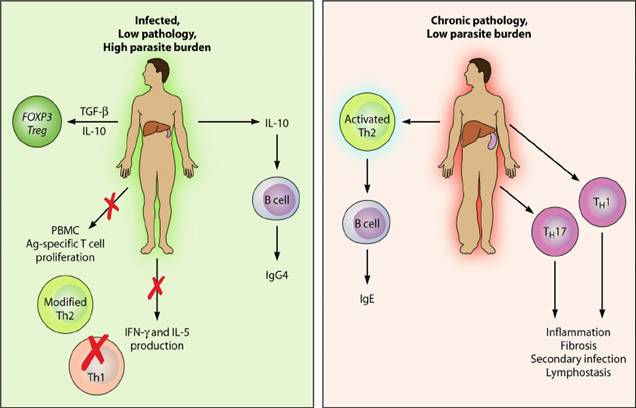 Hình 12. Một mô hình bệnh học trên người do nhiễm ký sinh trùng ở mô mạn tính