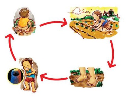 Chu trình tái nhiễm giun giữa môi trường xung quanh (nguồn ảnh:dantri.com.vn) |