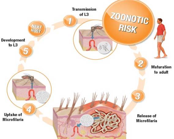 Ngoài ra, tiềm năng lây truyền từ động vật sang người của loài giun tròn này là một vấn đề y tế công cộng liên quan, giun D. repens thường có liên quan đến bệnh dirofilariosis ở người khu vực Old World.