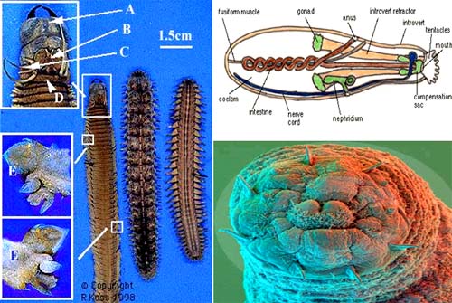Hệ thần kinh phát triển yếu, gồm các hạch não, vòng hầu và dây thần kinh bụng. Giác quan chỉ có vành tiêm mao quanh miệng. Diện hô hấp được thực hiện trên khắp bề mặt cơ thể sá sùng. Thông thường chúng ta hay gặp kích thước các loài sá sùng không dài hơn 10cm, nhưng ngoại lệ có một số loài có thể dài gấp vài lần chiều dài thông thường này.