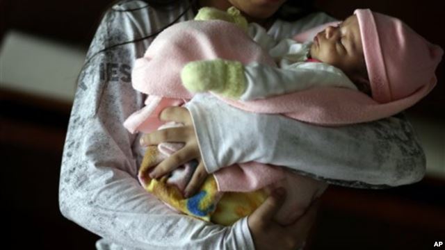 Bức ảnh phôto ngày 14/5/2015, một cô gái 13 tuổi đang bế đứa con một tháng tuổi của mình tại một nơi trú ẩn cho trẻ em gặp khó khăn ở Ciudad del Este, Paraguay.