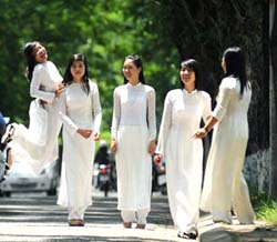 Nhấp nhô những nón bài thơ, Dọc đường Lê Lợi sương mờ vấn vương. Nhìn tà áo trắng thân thương, “Cuốn theo chiều gió” dọc đường mưa bay. |