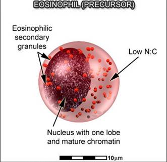 Chúng được tìm thấy trong tủy và khaongr giữa tủy và vỏ của tuyến ức và đoạn tiêu hóa dưới, buồng trứng, lách và hạch lympho nhưng không có trong phổi, thực quản và một số cơ quan nội tạng khác dưới điều kiện bình thường. sự có mặt các eosinophil trong các cơ quan đề cập sau sẽ liên quan đến bệnh. Bạch cầu ái toan tồn tại trong hệ tuần hoàn khoảng 8-12 giờ và có thể sống sót trong mô thêm 8–12 ngày khi không có sự kích thích.