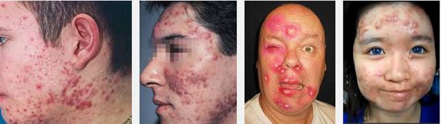 -Mụn nang. Những mụn này sâu, đau, đầy mủ và có thể để lại sẹo.